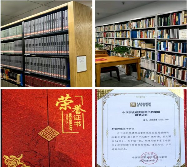 世界历史研究所汤重南研究员夫人张宗平研究员根据汤重南研究员的生前愿望,日前向中国历史研究院图书资料馆捐赠图书1713册(其中中文图书1639册,日文图书74册)及手稿一批。汤重南研究员是我国日本史及中日关系史研究领域里的著名学者,曾多年担任中国日本史学会会长,所赠文献资料是汤重南研究员毕生积累的精华,这批赠书丰富了中国历史研究院图书资料馆的馆藏。图书资料馆袁立泽馆长向张宗平研究员颁发了赠书证明,并表示一定维护好利用好这批珍贵资料,为中国的日本史研究继续发挥重要作用,让汤先生在天之灵感到欣慰。此前,还有一批日文图书捐赠给了东北某大学图书馆和世界历史研究所日本与东亚史研究室,汤先生主持编译的大部头日文档案史料计5种300余卷册已捐献给世界历史研究所。