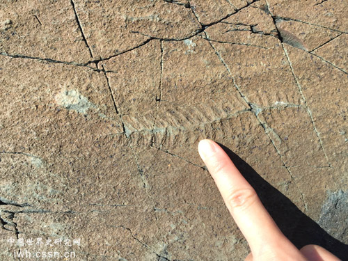 我们来到一块巨大的石层面前,有人尖叫:化石!这时,导游让大家脱鞋,换上提前发给大家的厚毡袜套,因为鞋底会磨损带有化石的石面。导游助理是一位生物系的学生,她发给每人一份化石类型的示意图,让大家对照岩面上的化石。以往都是在博物馆里见到化石,这次见到原生态化石,我有些兴奋,还担心地问导游,“看这些岩石的走向,有一天它们会再次沉入海底的吧?”导游说,“这会是一个很缓慢的过程,究竟有多少时间,也是我们目前研究的内容之一”。有的游客掏出自带的放大镜,趴在地上仔细地观摩化石。有个小学生指着一个几寸长的化石印问导游,“它活着时有多大呢?”导游回答:“约有三四十厘米长吧”。“哇!”大家都惊叹不已。