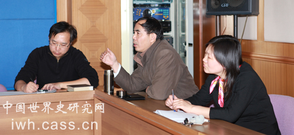 世界历史研究所党委书记赵文洪研究员(中)、张丹博士(右)