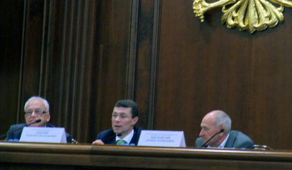 俄罗斯联邦卫生与社会发展部部长托比林М.А(中)、俄罗斯科学院社会政治研究所著名人口问题专家雷巴科夫斯基Л.Л.(右)