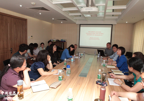 2016年5月31日,美国斯坦福大学古典学系罗马史专家瓦尔特·谢德尔教授应邀到世界历史研究所做“巨大的均平机:暴力与贫富不均的全球史”报告。美国德堡大学古典学系主任、上海师范大学“海外高层次人才引进计划”特聘教授刘津瑜博士陪同来访。