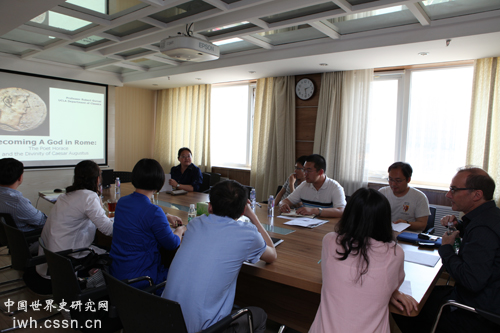 2016年5月24日,美国加州大学洛杉矶分校古典系副教授罗伯特·居瓦尔顺访世界历史研究所,做了题为“成为罗马之神:诗人贺拉斯与元首奥古斯都的神圣性”的学术报告,就奥古斯都统治时期对元首的神化、文学以及钱币学史料在古希腊罗马史研究中的使用方式等问题同世历所学者进行了交流探讨。