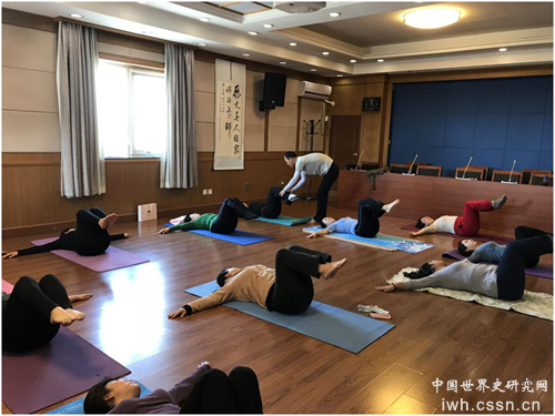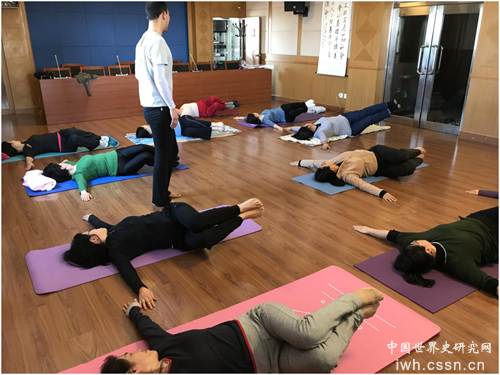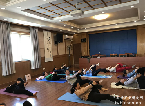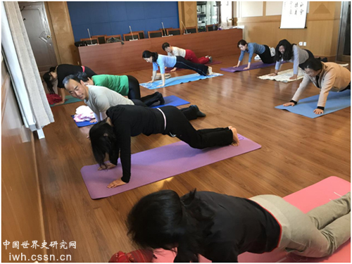 在中国社会科学院工会和妇工委的鼎力支持下,美术馆片区世界历史研究所的瑜伽训练班于3月15日周四中午正式开班了,第一次上课聚集了很多对瑜伽和身体调理有兴趣的女同胞,一共有十多位,在瑜伽老师张连永的带领下进行了1小时15分钟的训练。
