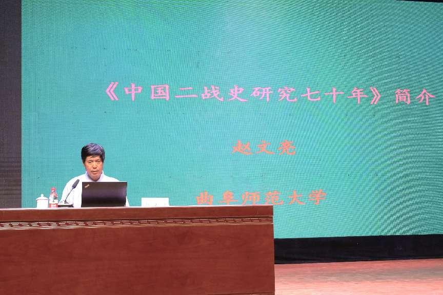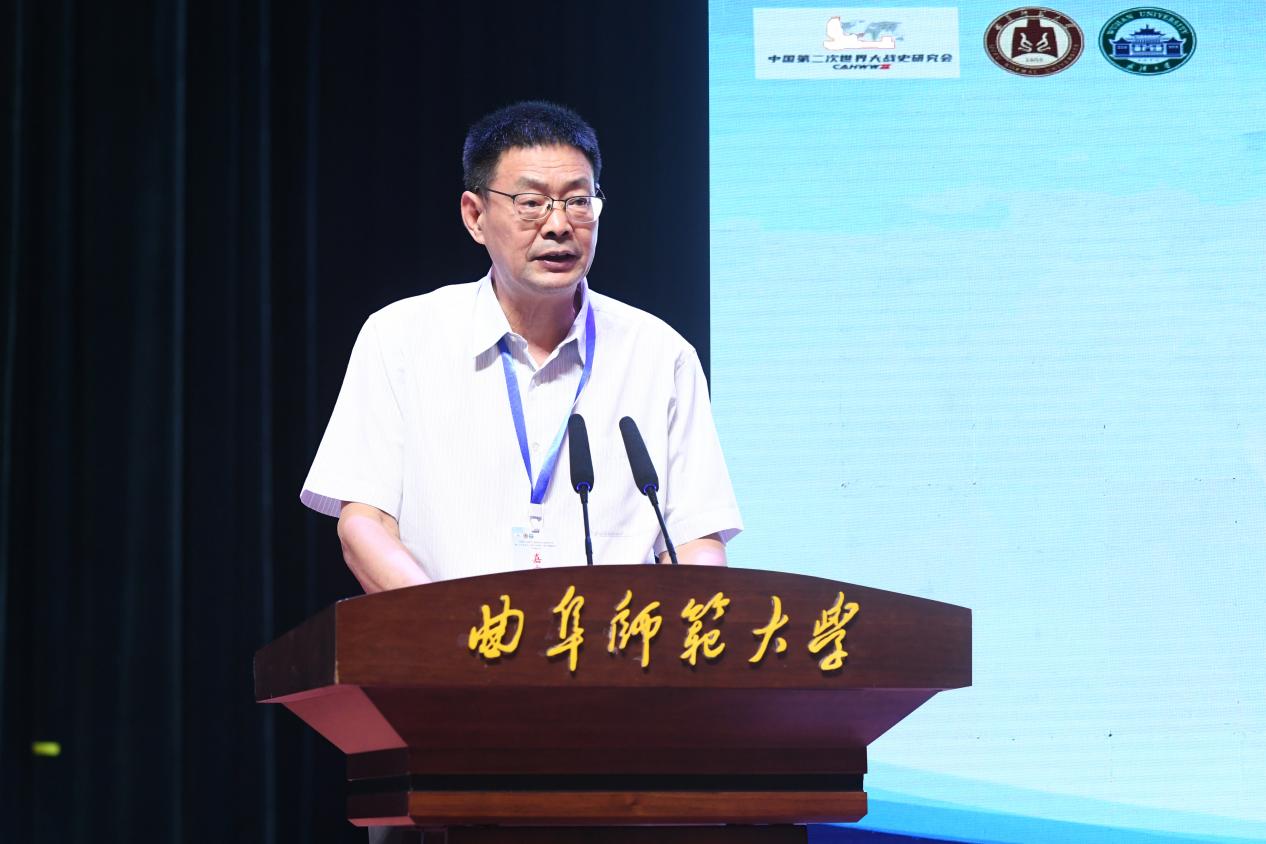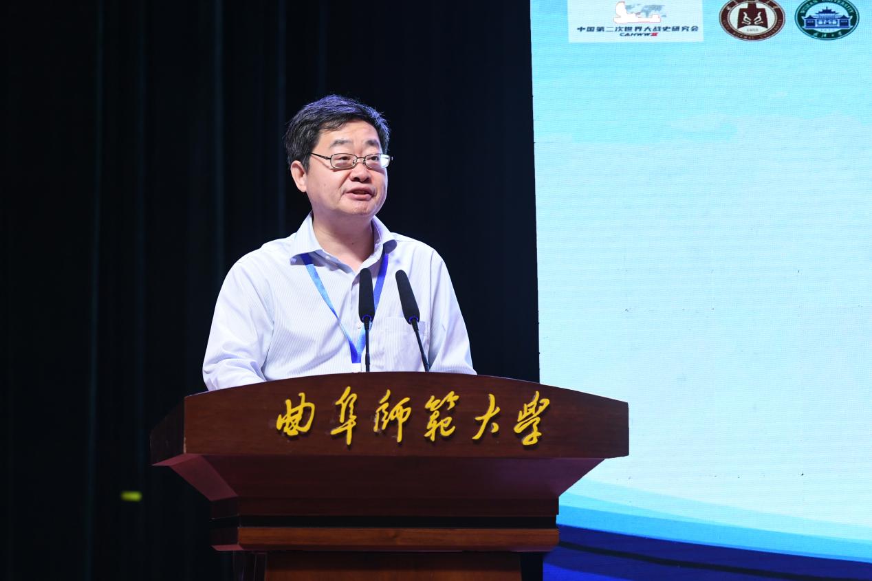 中国第二次世界大战史研究会会长、国际关系学院林利民教授在致辞中强调,战争与和平问题研究,要坚持马克思主义的正确立场,坚持正确的世界观和价值观,致力于构建中国特色价值体系和话语体系。林利民指出,曲阜是孔子故里,是中国文化之乡,也是中国抗日战争战场所在,是英雄之乡。在曲阜附近的台儿庄和微山湖,都是中国抗日战争的标志性胜地。台儿庄战役显示中国人民不畏强暴,有能力以弱敌强、战胜敌寇;微山湖游击战事迹,则显示了中国人民以人民战争、游击战争等方式与强敌周旋的战略智慧,树立了中国人民开展抗日游击战争、湖上游击战争和人民战争的典范,开辟了弱国反击强敌侵略的反侵略战争新形态、新样式,具有榜样意义。
