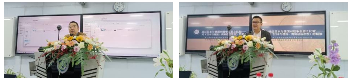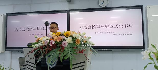 在随后的主题讲座环节,北京外国语大学李雪涛教授,北京大学李维教授和南京大学王涛教授分别作了题为《战后日本与德国对战争反思之比较——对仲正昌树<日本与德国:两种战后思想>的解读》、《纳粹史研究中的理论问题》、《大语言模型对德国史研究的挑战与机遇》的讲座。从李雪涛教授的报告中,我们可以看到,仲正昌树从哲学、政治和公众层面入手,分析了战争罪责反思的方法,认为德国比日本较为完整地完成了对二战的反思。李维教授回顾了“法西斯主义”的概念史,对法西斯主义和纳粹主义进行了区分,强调了历史研究中的实证层面,鼓励青年学者们以扎实的证据为基础,敢于做具体的研究。王涛老师强调大语言模型对史料搜集工作的有效性,他认为大模型工具出现以前,历史学者关注数字人文、数字史学需要一定的门槛,有了大模型以后,跨学科研究会更加容易。