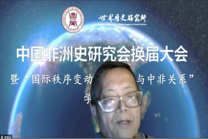2022年11月12日,由中国非洲史研究会主办、华东师范大学历史学系(非洲研究所)和中国社会科学院(中国历史研究院)世界历史研究所非洲史研究室承办的中国非洲史研究会换届大会暨“国际秩序变动中的非洲与中非关系”学术会议以线上线下相结合的方式举行。会议在中国历史研究院和华东师范大学设立分会场。华东师范大学历史学系主任梁志教授、中国非洲研究院执行院长李新烽研究员、中国社会科学院世界历史研究所党委书记罗文东研究员、中国非洲史研究会会长李安山教授先后在会议开幕式上致辞。外交部非洲司公使衔参赞贺红燕作了主旨报告。