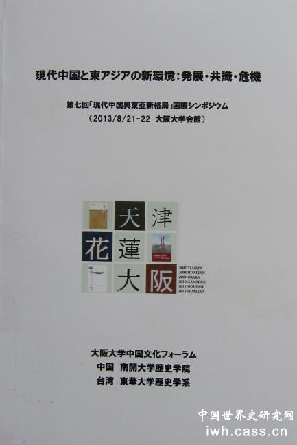 2013年8月21-22日,由大阪大学法学科、南开大学历史学院和东华大学历史学系共同主办的第七届“现代中国与东亚新格局”国际研讨会,在大阪大学会馆隆重举行。此次会议继续由三校合作,以“现代中国与东亚的新环境:发展、共识、危机”为主题,共有来自日本、中国大陆和中国台湾的师生50余人与会,向大会提交了42篇高质量的论文。