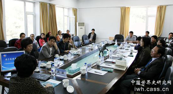 东北师大韩东育教授代表团队对武寅研究员的来访表示欢迎,向她介绍了东亚史学团队的基本状况、学术研究焦点以及团队成员的研究专长,并从“前近代”的长时段视阈下阐释了东亚史学团队的研究课题、研究方法与学术关怀。指出,这种研究将会克服地域与学科的局限,实现“学际”、“时际”和“国际”的融通与汇合,为东亚史研究提供新的范式。武寅研究员对东亚史学团队深邃而富于创新能力的学术研究,给予了高度评价,她强调,中国社科院和国家社科规划办一直关注东亚史学团队的研究工作,团队成员高质量的研究成果曾引起国内外学术界同仁的瞩目和认可,仅从参观中所见东亚史学团队的资料建设情况,就能折射出其深厚的学术积淀。同时,她又对东亚史学团队打破专业藩篱、汇聚专业英才的综合研究方法倍加称赞,并从宏观和微观两个视角分析了东亚史研究的重要意义。